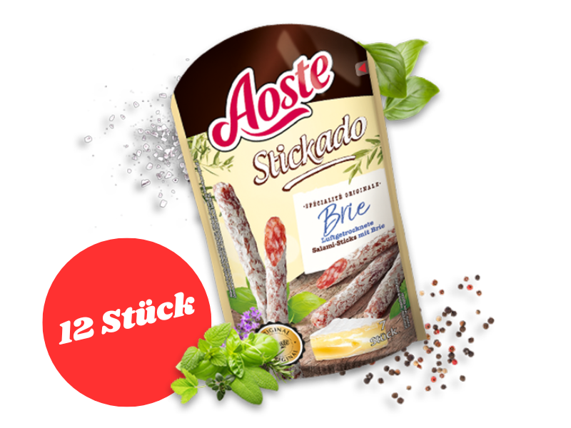 Durch die natürliche Reifung an der Luft, bildet sich der für unsere Stickado typische Edel-Schimmel. Abgerundet mit Brie bekommt diese Sorte eine ganz besondere aromatische Note